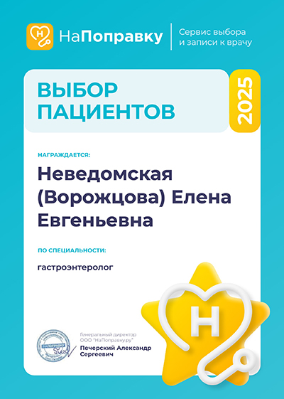 2022 г. – повышение квалификации по программе «Актуальные вопросы гепатологии».