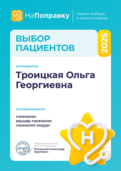 2017 г. – повышение квалификации по специальности «Акушерство и гинекология» в ФГБО УВО «Северо-западный государственный медицинский университет им. И.И. Мечникова»