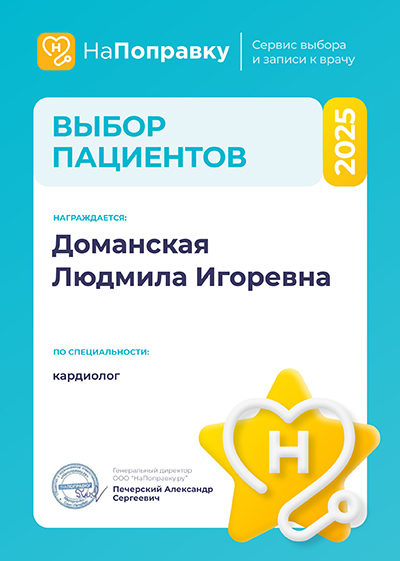 2020 г. - повышение квалификации в ФГБОУ ВО ПСПбГМУ им. И.П. Павлова по специальности «Кардиология»
