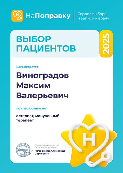 В 2009 году проходил профессиональную переподготовку в ГОУ ВПО «Санкт-Петербургская педиатрическая медицинская академия» по специальности «Мануальная терапия».