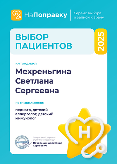 2023 г. - ФГБОУ ВО "ПСПбГМУ им.ак. И.П. Павлова" МЗ РФ по специальности «Аллергология и иммунология»