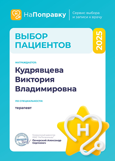 2024 г. – Российская академия непрерывного профессионального образования (РМАНПО) по специальности «Терапия»